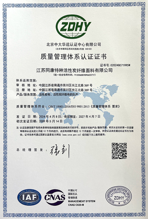 江蘇同康特種活性炭纖維面料有限公司座落在江海明珠的窗口,民族工業(yè)的發(fā)祥地,省級(jí)經(jīng)濟(jì)開發(fā)區(qū)——南通港閘經(jīng)濟(jì)開發(fā)區(qū),沈海高速、寧通高速貫穿而過交通十分便捷,公司占地面積4.5萬平方米,建筑面積2.8萬平方米,固定資產(chǎn)8000多萬元。同康公司是專業(yè)生產(chǎn)活性炭纖維的企業(yè),公司擁有國內(nèi)特闊幅大型連續(xù)式活性炭纖維生產(chǎn)線,可生產(chǎn)1.5米幅寬的活性炭纖維系列產(chǎn)品。有寬幅拉幅定型機(jī)、多功能層壓織物復(fù)合機(jī)、連續(xù)式活性炭纖維靜電植絨生產(chǎn)線及多功能復(fù)合材料生產(chǎn)線等設(shè)備...