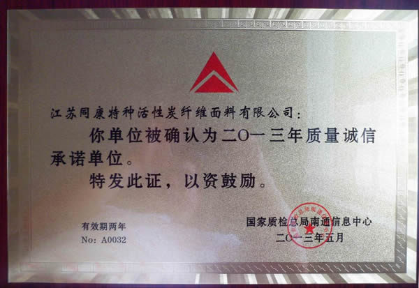 我公司被國家質(zhì)檢總局南通信息中心確認為二O一三年質(zhì)量誠信承諾單位。